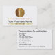 Upscale pharmacy business cards you can customize with simple and powerful two side design that includes a simulated gold mortar and pestle along with gold printed line accents, and great text layout. Designed for a pharmacy, Pharmacist, or medical industry buisness.