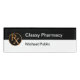 Classy retail pharmacy staff ID badges with image of an elegant gold coloured RX emblem and space you can customize with the name of your pharmacy and employee ID name. Available in large or small quantities and in bulk on a budget.