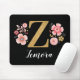 A beautiful, feminine monogrammed pink floral mousepad, featuring pink flowers and a faux gold monogram letter Z on a black background. Personalize the mouse pad by adding your name underneath the monogram. Makes a fun gift for a friend or for a bridesmaid gift. Designed for you by Blackberry Boulevard.