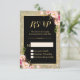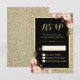 Classy Pink Floral Gold Glitter Sparkling RSVP Card
