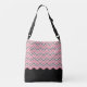 Classy Pink Grey Chevron Monogram Crossbody Bag