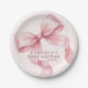 Classy Pink Watercolor Bow Baby Shower Paper Plate