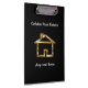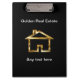 Classy custom acrylic real estate clipboard that includes a gorgeous simulated gold house symbol digitally printed on both sides, and text you can personalize, all designed for a real estate agent, Realtor, or broker.