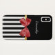 Classy Red Bow Black and White Stripes With Name Case-Mate iPhone Case