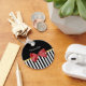 An elegant basic keychain featuring vertical black and white stripes, embellished with a chic FAUX gold coloured stripe and a picture of a classy red ribbon style bow. Personalize it by adding the name of that special girl in your life. Flat printed image, NOT metallic or actual bow.