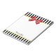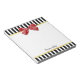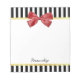 Make any note special with this elegant notepad featuring vertical black and white stripes, embellished with a chic FAUX gold coloured stripe and a picture of a classy red ribbon style bow. Personalize it by adding the name of that special girl in your life. Flat printed image, NOT metallic or actual bow