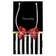 Classy Red Bow Black and White Stripes With Name Small Gift Bag