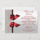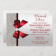 Classy Red Gem Bow, Silver Sequins Graduation Invitation