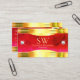 Classy Red Marble Shiny Gold Border Monogram Photo Business Card