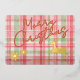 This holiday card is distinguished by its unique and elegant design. It features a classic "Merry Christmas" greeting printed in real gold foil, accompanied by illustrations of a reindeer and snowflakes. The card is further enhanced by a striking plaid pattern in a sophisticated colour scheme of light green, pastel pink, and red. In the front of the card, there is space for you to include your family name and the current year. The back provides an excellent opportunity to add a personalized seasonal greeting or poem, making your message truly memorable. This card is the perfect choice for conveying your holiday wishes in style.