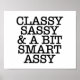 Girly-Girl-Graphics™ - Classy Sassy & A Bit Smart Assy LOL Poster - This simple, but elegantly beautiful black typewriter font text typography funny quote on a stylishly modern white background design makes a uniquely chic and hilarious birthday, graduation, wedding, Christmas, or any day gift for the friends and family you love. Thank you kindly for your purchase. Copyright (c) 2025 girly-girl-graphics™
