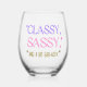 "Classy, sassy, and a bit bad-assy." Stemless Wine Glass
