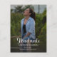 Classy script text "Graduate" two photo graduation announcement design featuring a large photo on front with a smaller square photo on the back and your graduation details below. The front template is set up for your graduating senior's name, class year and school on bottom underneath the script "Graduate". A black semi-opaque background overlays the photo to make the white text at the bottom pop. "Graduate" text style can only be edited by designer, but the colour is editable. Composite design by Holiday Hearts Designs (rights reserved) with template placeholder photos provided via Unsplash.