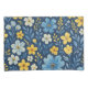 This beautifully arranged classic French Mediterranean botanical flower design features a vibrant pattern of yellow, white light, and medium blue flowers and leaves on a dark blue coloured background. It is available on a variety of modern decor products such as fleece blankets, lamps, and bedding.