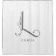 Simple but sophisticated and elegant.  White curtain with a beautiful L monogram and last name personalization.