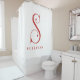 Simple but sophisticated and elegant. White curtain with a beautiful S monogram and last name personalized.