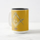 Stylish gold square and compass Masonic symbol monogrammed coffee mug.
