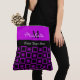 Classy Squares Pattern Black and Purple Monogram Tote Bag