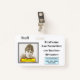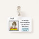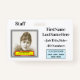 This classy and elegant staff badge design features editable details such as a portrait photo, a company/business logo, a staff member name, and a role/title. A badge like this could perhaps be used to indicate that a person is a known and authorized staff member at a business or workplace. [~Z0000450]