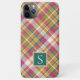 Contemporary pink red, green, orange, and white tartan plaid pattern. With room to customize or personalize with a monogram or initial of your choice. Beautiful, modern, and cool cover for the trend-savvy and art-loving hip trendsetter, artsy motif lover who wants to protect their phone from dust and dirt, wear and tear. This design is available in Apple iPhone 6, 7 and 8 Plus, 10 or X, XR, XS, 11, 12, 13 Mini, 14, 15 Plus, and Pro Max cellphone cases. Show off your style, look fashionable trendy, and feel stylish with a unique design on a mobile device accessory of your choice.