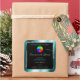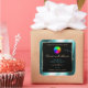 The design features a bright shimmering light teal glitter frame with tiny glitzy stars on a plain black background.