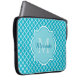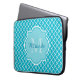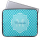 Classy Turquoise Blue Quatrefoil Monogram and Name Laptop Sleeve