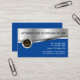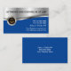 Attorney business profile card template designed with simulated silver grey tone design elements and blue background colour that can be changed and includes a gold coloured scale of justice emblem along with a text layout you can easily customize online. Designed as a lawyer profile card for a law practice or legal services.