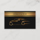 This cool unique automotive business card has a classy and upscale appearance using gold tone design elements that give the visiting cards a touch of class. Designed for an automotive repair shop, customs, detailing, or luxury auto broker.