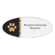 Classy veterinary services office employee name badges in an upscale look with gold coloured paw print and gold coloured design element that looks metallic, all digitally printed on high quality acrylic. Created for your entire office staff members that adds a professional look in front of customers. Available in bulk or small quantities.
