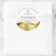 The design features a noble shimmery wavy gold decoration with soft glitter stars and a light white background.