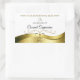 The design features a noble shimmery wavy gold decoration with soft glitter stars and a light white background.