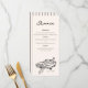 With its clean design and attention to detail, this wedding menu not only informs your guests about the delicious meal ahead but also adds a touch of class to your reception tables. It's a reflection of your love story and the journey you've embarked on together, with the "Just Married" car symbolizing the exciting road ahead.