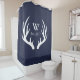Classy yet rustic shower curtain with white deer antlers, monogram letter, and established date in white.The background is dark navy blue but can be customized.