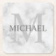 Classy White Marble Personalized Monogram and Name Square Paper Coaster