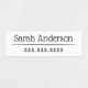 Elegant, waterproof property labels with two lines of customizable text, for example your name and telephone number. Black text on white background. You can change fonts and colours in the design tool.