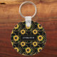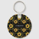 Classy Yellow Sunflowers Stylish Pattern on Black Keychain