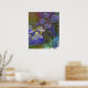 Claude Monet's Water Lilies and Agapanthus - Claude Monet's Water Lilies and Agapanthus is a wonderful impressionistic painting by one of the master flower artists of all time. The water garden is alive with color and emotion, as the purple Agapanthus flow up from their blue and green stems. The water is alive with swirls of brown, green, and purple. The water lilies are an impression -- they're not supposed to be an exact replica of a real water lily. The lilies are green and purple, and there are two yellow flowers on them. The surge of colors are inspirational. Claude Monet was one of the great water lily painters -- perhaps the greatest artist of all time. He certainly painted lots of water lilies - but this painting is quite different, as it also features the agapanthus in the foreground.