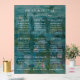 Acrylic wedding seating chart sign featuring modern typography in and Claude Monet Water Lilies painting background