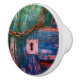Une vieille porte avec peinture à éplucher, une chaîne rouillée et un trou de serrure. La peinture est un tableau de jolies couleurs bleu, vert et rose. Rustique mais féminin.