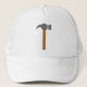 An illustration of a simple steel claw hammer cartoon in a brown wooden handle. This cute tool design is a gift idea for carpenter, contruction worker and craftsman.