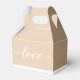 The word "Love" in a modern script font elegantly adorns the favour boxes, symbolizing the essence of your special day. This minimalistic design allows the focus to remain on the personalized details, reflecting the unique love story of the bride and groom.