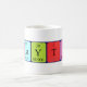 Clayton spelled out as C La Y T O N (Carbon Lanthanum Yttrium Tritium Oxygen Nitrogen) on a mug for the scientist in you.