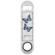 Pop ouvrir les plans de bouteille avec ce Bouteille Florale Papillon bleu unique Ouverture de bouteille personnalisée. Bouteille Opener design présente une paire de papillons vibrants reposant sur une vigne florale blanche contre un arrière - plan gris clair. Autres cadeaux disponibles avec ce design ainsi qu'une variété de couleurs.