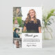 Photo collage bereavement thank you card with a personal thank you message printed in an elegant black font with your loved one's name in a bold script, and a clean photo collage of five photos of your loved one. Simple photo sympathy thank you card with elegant and modern fonts and five photos, four smaller and one bigger. Sympathy thank you note with a pre-printed message you can keep as is or edit to suit your needs. Thank your friends and family for their support during your difficult time of bereavement with this thank you card personalized with photos of your loved one from their wonderful life, perhaps a mix of recent photos and childhood photos.