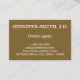 This professional, clean, and simple business card design features a brown background. It could be used by a professional such as a patent agent, counsellor at law, lawyer or barrister. The name, profession and contact details can be personalized.