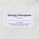 This clean, simple and minimalistic business card design features a triple-line border, and could work well for somebody in a conservative profession such as law, perhaps working as an attorney, paralegal, or judge. The details on the front of the card can be personalized.