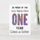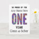 One year hand drawn Clean and sober card for sobriety birthday, anniversary. Choose any name and background colour or design.
