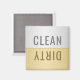 This clean dirty dishwasher magnet will match accent your modern kitchen perfectly. This design features a faux silver background on the top with the word "Clean" in dark grey text. The bottom half has a faux gold background with the word "Dirty" in a modern dark gold typography. Makes a great a great stocking stuffer or gift for any occasion! Designed by artist © Susan Coffey.