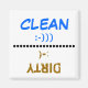 The words clean and dirty with a happy computer and a sad computer You can change the colours of the words, of the of the points and of the background if you want.