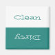 Clean Dirty Dishwasher magnet, with a reversible message. Using a teal green and white background, you can customize this item with white and teal green text. A trendy item for keeping your kitchen clean and organized!
